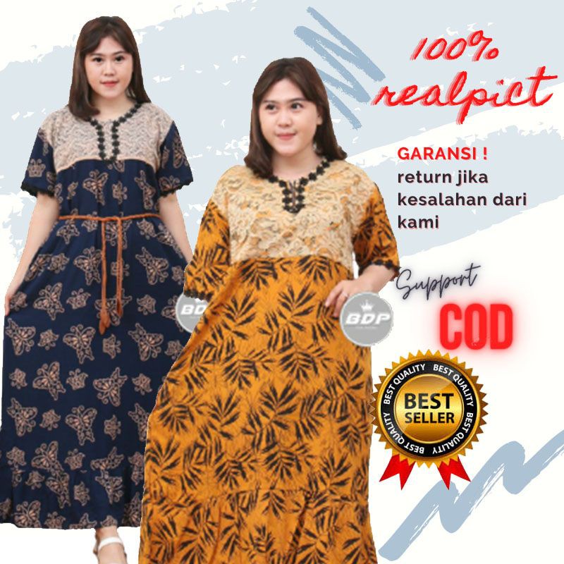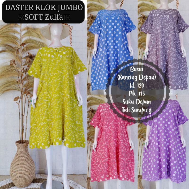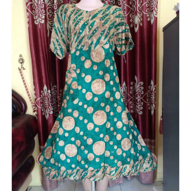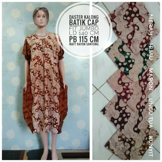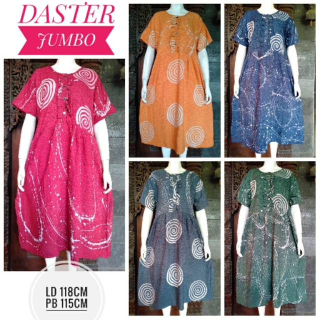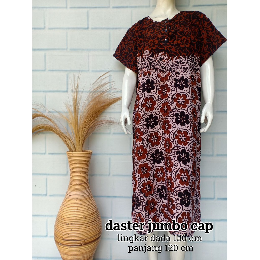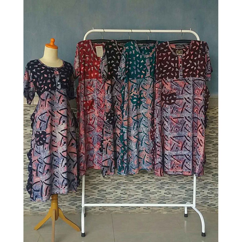 Ukurannya pun beragam, mulai dari daster batik all size sampai daster batik jumbo.